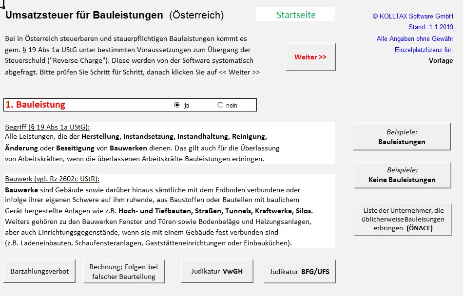 UMSATZSTEUER Spezialsoftware / Stand 1.1.2025